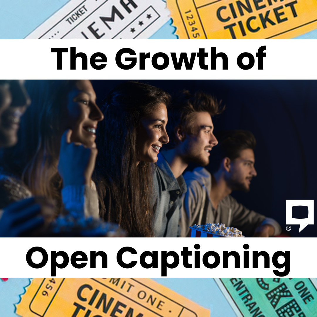 Open captioning describes the visible, on-screen display of dialogue and non-speech elements (e.g. music, speaker identity, and sound effects) and are always visible.